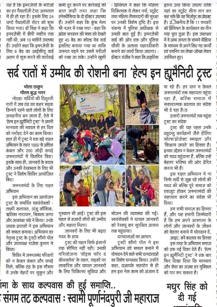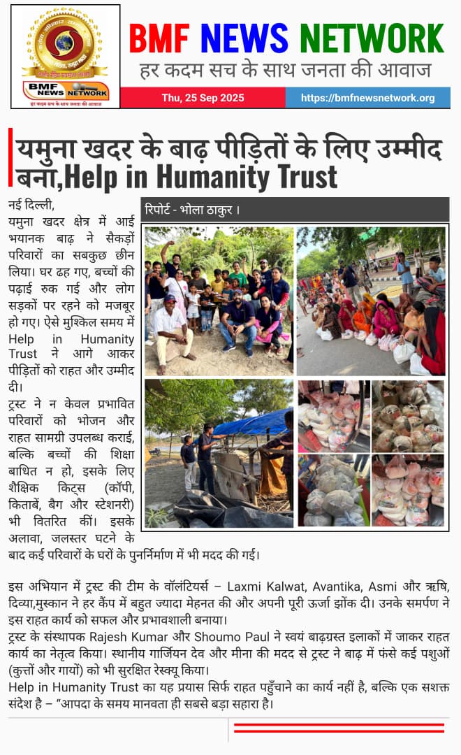 We sincerely thank Hindustan Times – City My City for featuring and highlighting the humanitarian efforts of Help in Humanity Trust. Your platform has given voice to compassion and helped bring attention to the spirit of kindness spreading across Delhi-NCR.This recognition not only motivates our volunteers but also inspires more people to step forward and serve humanity with dignity and empathy. We are grateful for your continued support in amplifying stories that truly matter.
