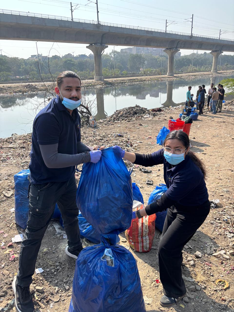On February 15, 2026, Help in Humanity Trust successfully organized the Yamuna Clean Up Drive near Vasundhra Enclave, New Ashok Nagar, in collaboration with Rotary International District 3011 and Rotaract Club of Ingenious Minds. The initiative aimed to promote environmental responsibility and encourage community participation in keeping public spaces clean.